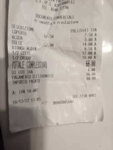 Prezzo impegnativo, soprattutto considerata la location abbastanza sperduta in quel di Castione, più alto rispetto alle proposte Gourmet medie da noi provate. Per una pizza e una birra artigianale in bottiglia, il prezzo si aggira dai 24 ai 30 euro a persona escluso il coperto, in base alla pizza scelta parlando della pizza singola. Non abbiamo provato la pizza alla pala, quindi non esprimerò giudizio sulla stessa ne in termini qualitativi ne economici.