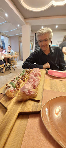 Read moreThese gourmet pizzas have a dough that is quite special, both crunchy and soft at the same time. Toppings are abundant and pack many disinct flavors in one bite. It is a bit annoying that if you order 1 pizza, it cannot be shared. For example each restaurant client is basically forced to purchase an entire pizza (around 20 euro). In fact, we could not finish both pizzas and had get them packed. The next day it was just soggy and no longer "gourmet." It is an interesting concept but seems a bit unfair in the set portions and pricing scheme = 56 euros for two pizzas...