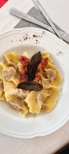 Ieri sono andata al ristorante insieme a 3 amici e il mio cane (un maltesino). Avevamo prenotato e chiesto esplicitamente se la presenza del cane sarebbe stata un problema e ci avevano risposto di no. Come esperienza culinaria niente da eccepire: ottimi piatti, abbiamo preso il piatto dell'oste davvero eccezionale, buoni anche gli antipasti. Purtroppo la mia personale esperienza è stata rovinata da due fattori: il primo è che, alla mia richiesta di avere una ciotola di plastica per dar da bere al cane mi è stato risposto picche alludendo ad un presunto regolamento anticovid (è la prima volta che sento una roba del genere, negli altri locali sia a bratto che a dorga mi hanno dato l'acqua senza storie, ma tant'é)ma, soprattutto, nel momento in cui ho cercato di capire se potevo avere almeno un bicchiere di plastica per riempirlo in autonomia di acqua, è uscito il proprietario che mi ha letteralmente aggredita in quanto avevo chiesto due volte una cosa che non Si poteva fare. Non è per il rifiuto alla mia richiesta, ma per i modi davvero pessimo utilizzati. Morale: ho mangiato bene, ottimo rapporto qualità prezzo ma grazie alla maleducazione e al l'aggressività del proprietario non ci...
