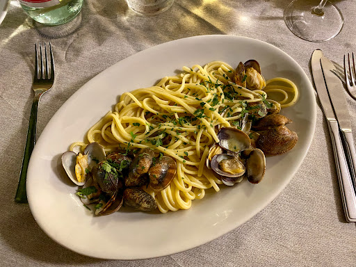 Besitzer und Gastgeber sehr höflich und aufmerksam! Dies ist der Ort, wo man echte italienische Produkte aus der Region genießen kann! Fisch und Fleisch, und zu einem fairen Preis! Keine Ausbeutung von Touristen und Ausländern! Wir riefen an, um um 13.30 Uhr zu Mittag zu essen und sie verlängerten ihre Schließzeit, um uns zu bedienen! Wir waren die einzigen Kunden zu diesem Zeitpunkt, da das Wetter an diesem Tag sehr schlecht war und trotzdem waren sie super höflich Dieser Ort verkörpert den wahren, wunderschönen, gastfreundlichen Geist der Italiener:) Sehr zu empfehlen!