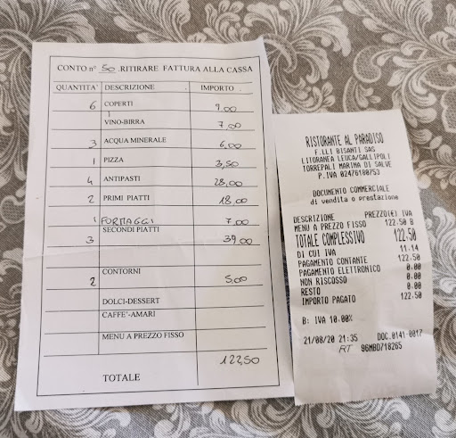 Read moreLocation spartana, alcuni piatti da rivedere. Il posto ha l'aria di festa del oratorio con arredi datati ma ci puo stare, quello che non va e che alcune stoviglie tra cui una brocca di vetro erano vistosamente sbeccati. I camerieri anche se giovani sono svelti e affabili. Ordinando 4 antipasti solo chi ha ordinato quello di mare e rimasto soddisfatto, quelli di terra anche se proporzionati al prezzo(6 euro) non hanno dato soddisfazione al palato. Il piatto forte sono i cavatelli nelle loro varie ricette, personalmente se avessi mangiato solo quel piatto avrei dato 6 stelle. Gustose anche le penne al salmone. Per quanto riguarda i secondi vista la bontà dei primi avevamo grandi aspettative, la prima frittura di pesce e stata giudicata positivamente dal nostro commensale, non così il nostro piatto che abbiamo ricevuto circa una mezz'ora dopo(dopo i primi). La nostra frittura non era propriamente come la si desidera, sia per doratura, croccantezza e sapore.. Forse era stato riscaldato... Ma va be.. Nota negativa per il contorno di formaggi, per quanto la porzione era abbondante la scelta degli stessi era anonima, nemmeno un formaggio tipico salentino o pugliese, io lo ritengo un errore. Per quanto riguarda la grigliata di pesce il giudizio è stato positivo. Il vino bianco della casa era buono e i caffè sono stati gentilmente offerti dalla casa. Sintetizzando, la cucina e buona ma alcuni piatti sono sicuramente da rivisitare e la location merita un bel cambio di immagine per soddisfare anche chi oltre a mangiare vuole soddisfare...