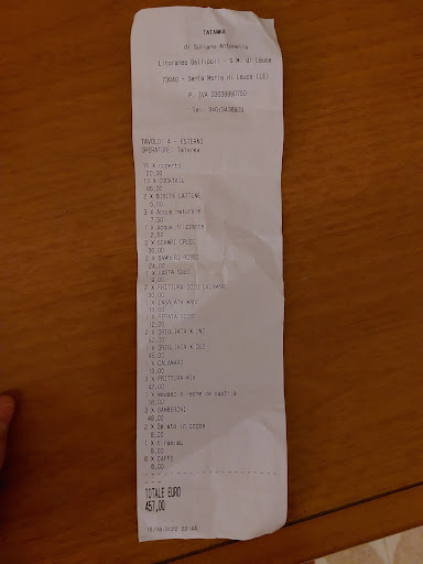 La trattoria è una perla rara, in un posto suggestivo, gestita da persone piacevolissime! Mangiato benissimo in un'atmosfera davvero accogliente e rilassante. Tutto questo viene moltiplicato x 1000 e spiego perché, parlando a titolo strettamente personale: sono andato in Salento, a Pescoluse, dal 1970 al 2000. Quando arrivammo, in tanti, era poco più di un villaggio di pescatori con un chiosco in legno e un piccolo bar alimentari, oltre alla fornitissima "caverna di Aladino" di Betti... Niente di più se non un mare e una spiaggia meravigliosi e puri. Basti pensare che dove oggi ci sono chioschi con nomi esotici e costosi, all'epoca c'era un campo di cocomeri da attraversare per raggiungere il mare. Tornato oggi, ho trovato tutto più che cambiato, stravolto! Sia chiaro: è normale ed anche giusto per l'economia locale, sono da sempre per il progresso... Ma devo ammettere con rammarico che ho notato più una espansione che una vera evoluzione. Poca o nessuna attenzione a fare qualcosa di bello che potesse esaltare le meraviglie del luogo... Solo volumi e cubature a tonnellate da riempire di soldi. Un esempio su tutti: dove prima c'era una trattoria sul mare, dove poter mangiare pesce portato da pescatori le cui barche vedevi capovolte in spiaggia, ora c'è un "raffinato" posto dove degustare sushi e poke! Ripeto: se è questo quello che cerca un turismo massificato, giustamente questa deve essere la risposta. Ma posso distaccarmi? Posso trovare tutto questo un parco giochi costosissimo, neanche fossi stato in Costa Azzurra? Bene! Tra tutte queste giostre, la trattoria Tatanka ha conservato il gusto e il fascino di una vera espressione del luogo in cui mangiare piatti semplici ma buonissimi, con un rapporto qualità/prezzo da lacrime di commozione, ascoltando lo sciabordio del mare che si agita tra le insenature delle grotte sottostanti. Per...