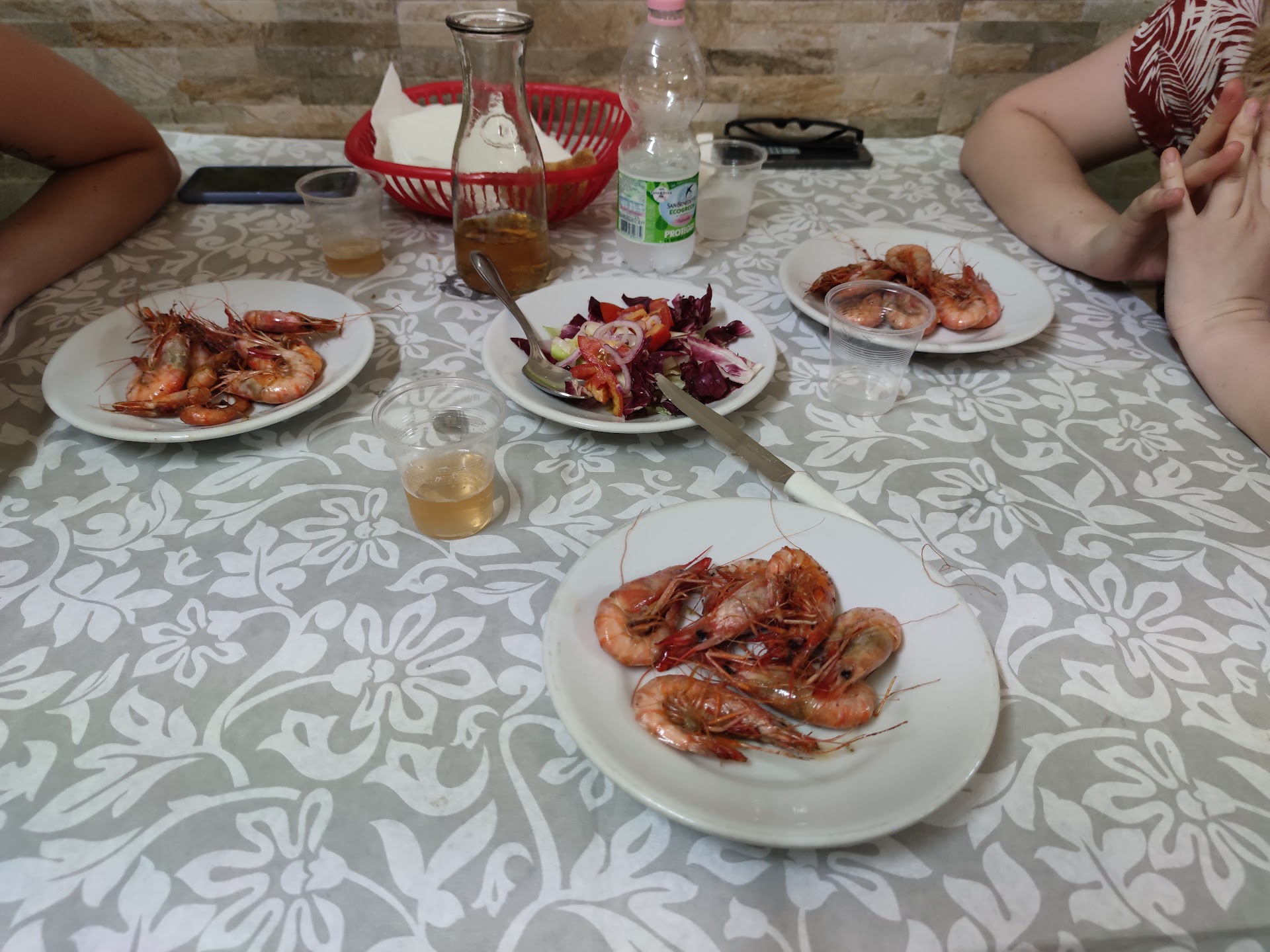 It is important to note that they don’t really have a menu and more so ask you “meat or fish” and serve whatever they are making that day. They do 3 courses for everyone with a loaf of bread - I got an appetizer (cheese, salami, olives, eggplant), a pasta dish with eggplant, and a meat dish with potatoes and peas all for €10.