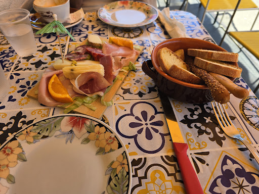 My husband and I wandered by this off-the-beaten-path bistro one evening on our way from Piazza Mazzini to the Benedictine Monastery. We wanted a light bite and with help from the two delightful young men running the place, we settled on aranchinetti (small round versions of the more traditional aranchini) and moderate servings of 2 antipasti options: marinated mushrooms and marinated cucumbers. The mushrooms were delicious. I’ve never had aranchini so don’t know how these rate, but they were happy to make us a mix of meat and meatless since I’m a vegetarian. What made the meal really special was how friendly and warm the hosts were. We had a fun time conversing via Google translate (they had time to do that because it was only 8pm so still quiet), though they do have a little English to get through...