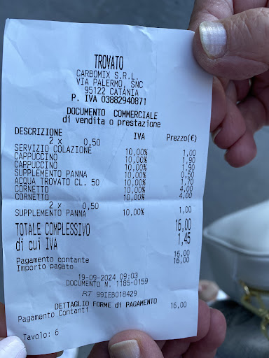 Se si potesse mettere 0 stelle, le avrei messe senza pensarci due volte. Cornetti molto buoni ed economici ma ecco che arriva la fregatura al momento di pagare. Ho mangiato due cornetti salati e il totale sarebbe stato di 10,80 euro. Al momento di pagare mi sono stati chiesti 14,80. Ho chiesto giustamente spiegazioni e il cameriere, innervosito, mi ha risposto che per ogni cornetto si paga il coperto di 2 euro. Lavorando io nella ristorazione chiedo quando fosse stato servito quel coperto, dato che non mi sono arrivate nè tovagliette nè posate per poter mangiare. Alla fine, resosi conto di aver esagerato, mi ha levato un coperto poiché io ero una, spiegandomi però che quello che si paga non è il coperto ma il servizio. 2 euro di servizio mi sembra eccessivo. Quando una persona compra una cosa si fa anche dei calcoli, per sapere più o meno quanto andrà a spendere. DOVETE AVVISARE LE PERSONE DEL FATTO CHE FATE...