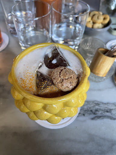 We paid 22 euros for two very small, very average drinks. The guy who served us didn’t seem to like us or something. He didn’t explain anything, got annoyed when I said I was allergic to grapefruit and then, when presenting the drinks, barely said a word on what was there. I felt like I paid a lot of money for someone to make me a mediocre drink. He made me a 150ml martini with a little bit of bergamot and lemongrass and a shot of tequila and mint with a massive block of ice for my boyfriend for twice the price of a decent large cocktail in any surrounding bar. Not even the glasses looked nice, we didn’t even take pictures it was all so disappointing.