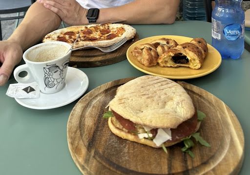 We were looking for a nice cafĂ© for breakfast and decided to try this place â and we did not regret it! Everything was delicious: we had coffee, sandwiches, pizza, and also tried some pastries. The prices were very reasonable (for example, an espresso was âŹ1 and the pastries were around âŹ1â2). The menu was available online, and I think it was even possible to order through the website, but we placed our order in person.