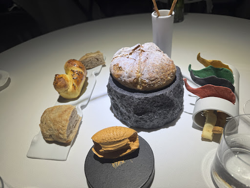 Beginning: On the website it was stated that there could be a plant-based tasting. However we found out in the communication with the maitre d' that making it vegan (lactose intolerance) was a potential issue. This is probably due to a misunderstanding about terminology which may not be the same in every language, but we did get the idea that we posed a problem for the kitchen and that felt a bit awkward (because the open kitchen showed the confusion clearly).