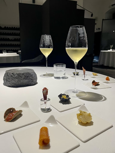 This place is insane! Sadly in a bad way…The dishes were like in the movie Star Wars where they eat all these weird space dishes that look terrible. Endless amuse bouches; one worse than the other. I just copied a review of an other customer because he also expressed the same feelings we had…but some extra criticism: charging €7,- pp for couverts, forcefully serving extra bottles of water (each €10,-) without us asking and wanting more, obligated to take 3 courses when you just want to eat ‘a la carte’….. Maitre was pushing and pushing for the expensive wines… Location and interior are questionable. Many 5 star reviews are made by people that only placed one review ever…..