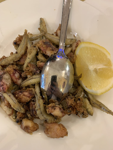 Read moreWe had a lovely fish menu for 25 euro including bread, wine and water. Especially the “pepata di cozze” and the “pasta con melanzane e spada” were really good. I would gladly come back just to have that dish with pasta, swordfish, eggplant and pine seeds (forgot to take a picture of it though). Also the antipasti were really good, and the secondo with a mix of grilled fish. All in all a good experience 😊