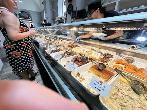Read moreHo già visitato questa gastronomia due volte (una per asporto e una accomodandomi) ed ho trovato tutto semplicemente perfetto. La vetrina con i piatti da scegliere sarà lunga più di dieci metri, e si può trovare di TUTTO: primi di ogni tipo, secondi sia di pesce che di carne tutti diversi tra loro e ogni contorno possibile, è quasi difficile scegliere data la scelta ampissima. Le porzioni sono giuste e i prezzi onestissimi; si può prendere un vassoio e pranzare sul posto (il locale è luminoso e pulito), si paga il giusto e ci si riempie a sazietà . Ultime, ma non per importanza, l'educazione e la gentilezza dei ragazzi (e della ragazza) che ci lavorano: sempre sorridenti e gentili da quando entri a quando esci, particolari che, essendo io stesso un cameriere, apprezzo tantissimo. Si trova al centro di via Umberto quindi è facilmente raggiungibile da qualunque...
