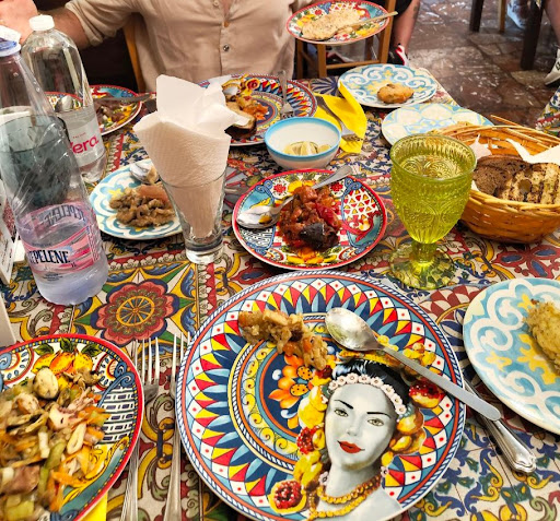 Read moreSiamo arrivati 40 minuti prima dell'orario definito e abbiamo chiesto se potevamo comunque usufruire della prenotazione su TheFork, ma ci è stato detto che potevamo accomodarci senza scontistica e annullando la prenotazione (del tutto inesatto, ci si può accomodare tranquillamente con la prenotazione su TheFork anche se si arriva prima). C'erano 4 tavoli liberi in tutto. Quindi siamo dovuti andare a fare un giro fuori e ritornare dopo. Quando ci siamo accomodati, abbiamo chiesto una frittura di pesce, e poi prenotare qualcos'altro dopo aver consumato quel piatto, ma ci è stato detto che non era possibile ordinare dopo (erano le 22.15) perché la cucina avrebbe chiuso e comunque di sabato loro avrebbero dovuto lavorare a pieno regime (c'erano solo 5 tavoli occupati, e altri 7 liberi, erano praticamente senza fare granché), obbligandoci praticamente a prendere un altro piatto. Avevamo detto in generale che avevamo poca fame, avrebbe potuto dirci che la frittura era un piatto molto abbondante per due persone, piuttosto che sprecare altro cibo. In generale, comunque i piatti erano abbastanza abbondanti, ma non erano nulla di speciale (abbiamo dubitato in realtà anche della freschezza del pesce). La signora alla cassa (forse la proprietaria) avrebbe potuto farci un sorriso, sia all'arrivo che anche al momento di pagare il conto diviso in due: sembrava l'avessimo insultata, a stento ci ha rivolto la parola. Invece, l'unico cameriere che lavorava là è stato molto gentile ed abbiamo apprezzato il suo servizio. L'atmosfera comunque era molto particolare, con abiti e arredamenti tipici siciliani. Buon posto per i turisti, per gli autoctoni una volta è già abbastanza. Da provare, ma...