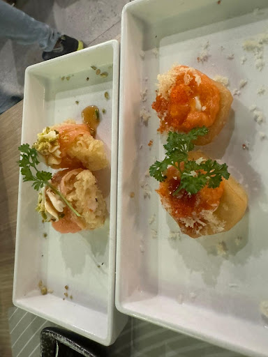 Purtroppo non possiamo dire per quanto riguarda il cibo servito....di qualità mediocre con presentazione altrettanto mediocre..... Abbiamo voluto provare 2 piatti speciali....Aragosta Maki ( dell' aragosta neanche l' ombra ).....e la Tartare Amaebi la quale consiste in una burratina con gambero rosso ( tutto annegato nell' olio ).....involtini primavera ( pasta spessa e vuota )....gamberi al curry ( serviti su una brodaglia gelatinosa ) i gamberi sembravano quelli comprati nei barattoli all' Eurospin ( gommosi ).....il riso dei nigiri risultata molto gommoso......sashimi di tonnno ( che io adoro ) dal gusto ferroso e dalla qualità discutibile.....tanto vantano nel menu anche il gambero rosso di Mazara ( ma credo che non sanno neanche cosa sia )......per non parlare dei Nigiri con Salmone scottato al tartufo ( tartufo?????? Una specie di pasta spalmata al sapore di tartufo....a differenza di altri posti dove il tartufo viene servito a scaglie proprio sui Nigiri ).....insomma esperienza negativa......quando siamo entrati le aspettative erano alte e avevo previsto una bella serata all' insegna del buon cibo....ma purtroppo la cucina ci ha molto delusi......nn voglio fare una recensione da Cattivo....ma quando si va fuori o per pranzare o per cenare i ristoratori devono garantire sia il contesto del locale ( personale, pulizia, accoglienza ) ma sopratutto la qualità del cibo intesa come materia prima che come preparazione.... Esemp: se tu nel menù mi proponi aragosta, gambero rosso , gambero di Mazara fresco o qualsiasi altra materia prima ......questo mi devi servire e non altro....su questo sono categorico......anche perche' nulla viene regalato ed il cliente paga profumatamente.....