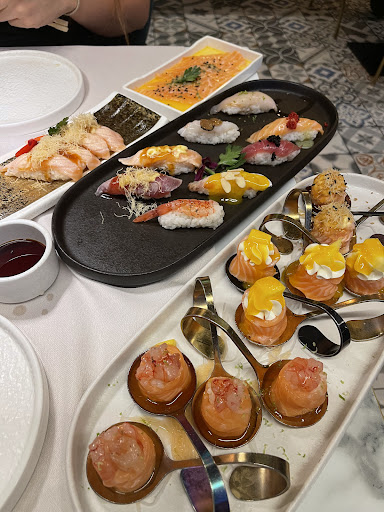 Read moreSi fa un po’ fatica ad entrare nel locale a causa dei gazebo posizionati ad un’altezza (o bassezza!) discutibile. L’interno è molto carino, presenta delle tipiche caratteristiche orientali. Sushi nella media. Non si pretende la qualità di un menù alla carta ma ci si aspetta una qualità superiore rispetto ad altri AYCE dato la fascia di prezzo medio-alta. Vasta scelta di portate presentate in modo molto gradevole. Mis en place ben curata. La caratteristica meno piacevole di tutto il contesto è il personale che, oltre a non parlare per niente italiano e a non sforzarsi ne di comprendere ne di comunicare in inglese, ti tratta con superficialità. A fine cena, dopo aver saldato il conto (senza scartare i famosi biscotti della fortuna poiché sprovvisti), il proprietario contesta il fatto che su sei persone sedute a mio tavolo, due non hanno cenato (lo avevamo già detto invitando a togliere anche il coperto che avremmo comunque pagato) ma che una di loro si è “permessa” di assaggiare due edamame!!! Stiamo parlando di due fagioli e non di involtini o chissà cosa. Due fagioli. Si permette di insinuare che i suoi colleghi (già andati via, quindi nessun confronto) gli hanno riferito che questi amici avevano assaggiato delle portate. Fatto assolutamente non vero dato che entrambi allergici a degli alimenti e quindi oggettivamente impossibilitati a compiere tale azione. Ebbene esperienza spiacevole, non è un posto che consiglierei e nel quale faremo ritorno.