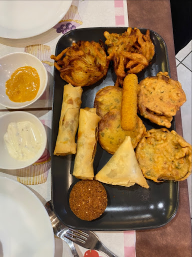 We decided not to order but to allow our host to choose our starters and mains. Our host asked about any dietary restrictions, which we all had none other than Irina and I are vegetarian and our friend would like something non-veg. We had three different starters, included pakora, aubergine, and lentil patty. All were deep fried and paired with a beautiful sauce. Not only was it pleasing to the eye, but dancing with flavours in our mouths.