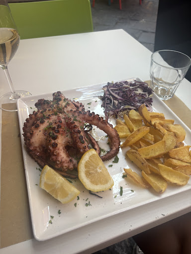 I came to L’iska because I saw a picture of the grilled octopus and people overall had pretty good experience. I have to say that I went against my ethical believes because of how smart and social octopi are. So I made an exception in hopes for a memorable experience. In the end it was 20 euros of sadness (18eur for the dish +2 euro service). It was an unnecessary huge octopus. Served rather cold without any flavour or seasoning. No sauce to highlight or celebrate this little life. Just dry cold huge dead octopus and you. A perfect example when quantity is expected to make up for the quality. Fries were also sad and the salad I couldn’t even eat. All I kept thinking of is how I could take it to go and make better, but I don’t even have a kitchen in my hotel 😭 Servers seemed to be nice and friendly but nobody knows how to deal with a guest who doesn’t have a good time. Which is not surprising cause when I mentioned it to the host he also didn’t really know what to do. Experiences like this are the reason I don’t feel excited about exploring local cuisines...
