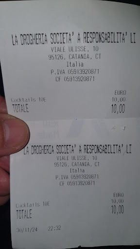 Read moreLA DROGHERIA è il Lounge Bar che non ti aspetti. In posizione strategica in Viale Ulisse 10 a Catania. Con un giardino pensile si presenta pulito ed ordinato. Personale affabile e preparato. Ideale per una colazione o per un pranzo veloce da il meglio di se stesso la sera quando apre a giovani di tutte le età. Del cibo non posso parlare non avendolo provato e tuttavia da indiscrezioni so con certezza della sua qualità. Chiude in bellezza il magnifico parcheggio a piani gratuito che consente tra l'altro di non perdere tempo alla ricerca di un posto. Il sottotitolo del logo aziendale cita " CON SERVIZIO D'AMORE" Sento di poter confermare la qualità di questa piccola isola felice. Ultima chicca, non trascurabile, sono i bagni, pulitissimi ed eleganti, certamente frutto di uno studio accurato di interior design, vera gioia...
