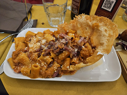 Menù: 3/5 Abbiamo preso la maggior parte delle portate del menù (antipasti, primi, pinse e secondi). Partendo dalla prima portata: Antipasti: Supplì, secondo me precotti, riscaldati un attimo in forno perché il formaggio all'interno non era filante né sciolto. Patate fritte buone con una crema al pecorino fantastica che ne insaporiva il gusto. Primi: Per la maggior parte buoni, a mio parere personale un po' troppo salati (carbonara e zozzona). Pinse: Questa portata era buona nei sapori ed equilibrata.