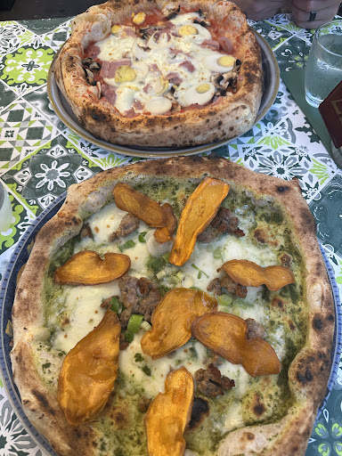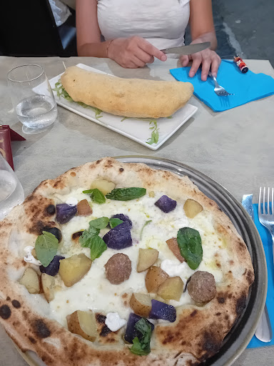 Read moreIniziamo col dire che arriviamo ci sendiamo prendiamo un antipasto e proseguiamo con le pizze la mia compagna prende la classica pizza fritta napoletana e io una pizza dove doveva esserci il pecorino il "topping di patate viola" e le polpette. Chiedo se c'è anche la salsa e mi rispondono di sì arrivano le pizze quella della mia compagna tutto bene la mia no apposto del topping cerano le patate bollite viola non il topping e non cera ne salsa ne pecorino e 2 polpettine misere non valeva nemmeno il prezzo della pizza tralasciando facciamo portare uno scatolo solo per la pizza della mia compagna e per spiegare come mai la pizza non fosse la stessa riportata nel menù viene e va via... la mia compagna sente da vicino il tavolo dove e eravamo noi il cameriere lamentarsi dicendo testuali parole "a pizza nun a vonu però sa volunu puttari" sentendo questo abbiamo risposto in modo scontroso e lui nemmeno a chiedere scusa alla fine dice il conto lo pago io tranquilla noi gli abbiamo risposto che il conto lo paghiamo noi e che minimamente avremmo mai portato questa oscenità di pizza a casa per noi. Detto ciò andiamo alla cassa il famoso cameriere non si è fatto avanti dato aveva fatto lo spavaldo lo pago io il vostro conto. La titolare fa finta dinulla e ci fa pagare 52 euro per mancanza di resto ci fa pagare 50 . Prendiamo lo scontrino e glielo lasciamo al tavolo sotto al bicchiere di vino tanto per far capire che noi non teniamo né hai soldi né siamo gente da dire che la pizza non era uguale al menù però cela volevamo portare. Cameriere da licenziare in tronco e anche i titolari pari a zero dato che se anno sentito la discussione dovevano come minimo venire a scusarsi e quant'altro. cercatevi del personale serio. zero professionalità. Sotto vi allego la magnifica pizza proprio uguale come...