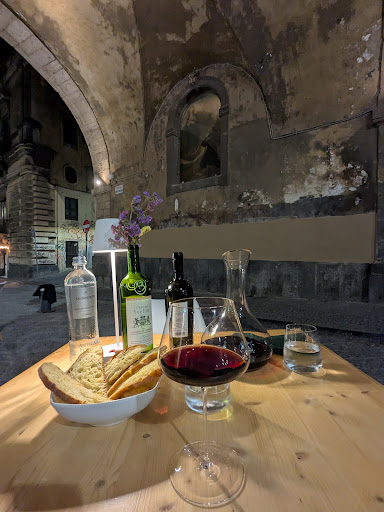 Man muss hier keine vorgefertigte Weinkarte durchstöbern. Stattdessen erzĂ€hlt man der Sommelierin, was man gerne trinkt oder wonach man sucht, und sie zaubert im Nu perfekt passende Empfehlungen. Was mir besonders gefĂ€llt, ist die SelbstverstĂ€ndlichkeit auch neue Flaschen zu öffnen, nur um sicherzustellen, dass man das Glas Wein bekommt, das wirklich zu einem passt. Das ist hier in Catania ein absolutes Alleinstellungsmerkmal und zeugt von echter Gastfreundschaft. Und sollte der Wein etwas höherpreisiger sein, fragt sie stets höflich, ob das in Ordnung ist â ein wunderbares Zeichen von Respekt gegenĂŒber dem Gast.