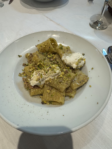 Now the other dish we order was the pasta with pistachios and pork cheek (guanciale). This was good, pasta cooked al dente and a nice starchy sauce to go with the straciatela cheese. Favorite dish.