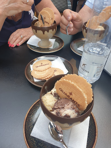 Conoscevo questo luogo perché ci ero già stata e devo dire che lo ricordavo piacevole e accogliente: faceva delle ottime granite di mandorla tostata, brioche molto soffici e Iris alla crema stupefacenti. Memore di questi ricordi ci sono voluta tornare il mio ultimo giorno a Catania… volevo portarmi un ricordo piacevole. E invece non è stato così!! Di solito non lascio mai recensioni negative anche quando qualcosa va storto perché penso che può capitare, a volte… ma questa volta è stato troppo tutto! Ci sono andata con mio cugino e mia zia. Loro hanno ordinato due aperitivi semplici ed io un’apericena a base di pesce perché volevo mangiare qualcosa prima della partenza. Ci sediamo… dopo 5 minuti ci portano una tovaglietta di carta, i bicchieri vuoti con il ghiaccio dentro e un cestino di pane. Dopo ulteriori 5 minuti torna il cameriere, posa sul tavolo 2 aperitivi, li stappa e se ne va senza versarli nel bicchiere. Lo ha fatto mio cugino al posto suo. E io ancora attendo… quando è arrivata la mia bevanda ho dovuto vuotare il bicchiere per eliminare l’acqua che nel frattempo si era formata. Anche io subisco la forte di cui sopra… me la stappa e se ne va. E io mi verso la coca da sola. Passano 10’ e del cibo nessuna traccia… nè degli stuzzichini per l’aperitivo (che nel frattempo è diventato caldo) nè della mia apericena. Lo faccio presente al cameriere, anche perché avevo il treno da prendere. Finalmente dopo tempo immemore arriva il cibo. Nel vederlo delusione totale… l’aperitivo giusto due pezzi, tra l’altro entrambi con il würstel che, se a uno non piace, non ha nemmeno l’alternativa della scelta. Un pacchetto di patatine lasciato lì chiuso sul tavolo e un piattino con olive e funghetti. Il tutto rigorosamente freddo!!!! Del mio piatto neanche l’ombra invece… e quando finalmente arriva altra delusione. Per un’apericena a base di pesce mi aspettavo insalatone cride o giù di lì… invece mi arriva un piattino di pasta con eccessivo sugo di pesce e capperi… una specie di insalatone di pesce spada che era insipida e oltretutto più che di pesce mi sembrava di carote per quante ce n’erano. Poi una caponatina (l’unica cosa decente!), un’altra cosa sempre piena di carote stufate e due e dico due quadratini di pesce contato e per finire due rettangoli i di parmigiana. E meno male che era un’apericena a base di pesce!!! Lo ricordavo diverso il pesce 😅 Comunque… altra stonatura… anche il mio piatto era completamente freddo!! Il colpo di grazia al momento del conto perché ci è stato presentato un conto salatissimo, oltremodo eccessivo per quello che ci era stato portato. Soprattutto perché avevo il paragone di costo con altri locali in zona… a cui non avevo potuto accedere perché purtroppo chiusi per riposo settimanale (lunedì) e l ho fatto anche presente, ma ovviamente parole al vuoto le mie. Così come ho fatto presente che mi è arrivato tutto freddo. E pure lì a chi l’ho detto? Al vento! Beh mi spiace ma hanno avuto una caduta di stile grossolana. Non dico che mi dovevano regalare il cibo perché comunque era stato consumato. Ma almeno avrebbero potuto farmi uno sconto oppure un buono sconto da riutilizzare visto le mancanze che avevo fatto notare. Quindi per me la recensione non può che essere negativa e la prossima volta avrò cura di andare da Mantegna, che consiglio vivamente. In alternativa da Ernesto. Per quanto mi riguarda Quaranta non mi avrà più...