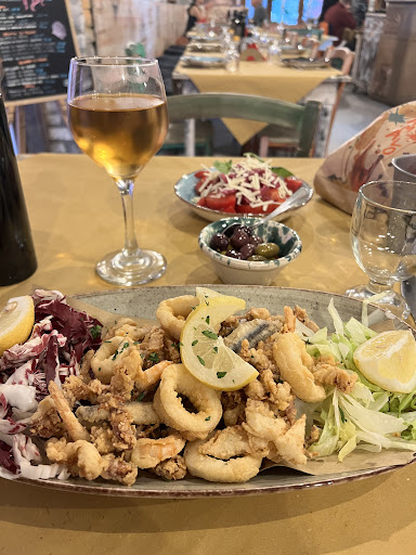 Read moreWe chose this restaurant as we wanted to try fresh seafood. At 7:45pm it was almost empty. We were greeted with a glass of processo, olives and bread. They don’t have a written menu as the dishes change frequently, they come with a board and explain everything to you (also in English), bringing you the fresh catch of the day on a plate (60eur/kilo, the fish is around 800g). For antipasto we went for fried sardine (sardine boccafico), delicious. As primo piatto we chose pasta with shrimp and lemon sauce - what is nice is that they separated one dish into two plates so that we could both try without disturbing the other. The dish itself was really tasty, especially lemon sauce. For secondo we tired sword fish with fresh salad. It was the best out of what we tried, fresh and fantastically prepared. We paired it with a fresh salad, we should have chosen grilled vegetables, the salad was boring and not well seasoned. As per the experience, you have like 5 different people attending you, each one with a different job which makes you feel very special. Be mindful, it is an expensive restaurant, e.g. pesce spada was 14eur, the salad was 6eur, one shot of limoncello 4eur. In addition, there was no vino della caza. All in all, we had...