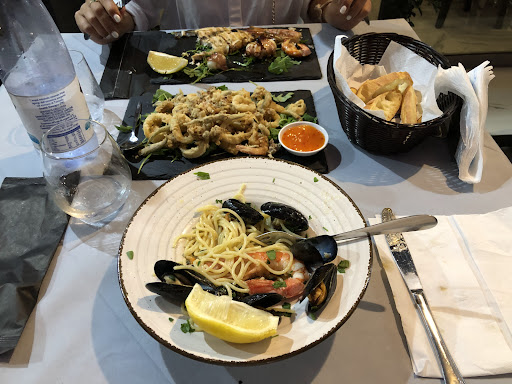 So we chose this place because of TheFork 30% discount. First problems appeared when we wanted to know what spaghetti allo scoglio is, but the waiter was unable to explain, probably because she was not Italian and not spoke it well. Later we found out that this same appeals to English language, when lady sitting next to us ordered grilled chicken breast and received it in grated bread, and then after explaining the mistake to the waiter and being apologized, she received a horse meat. So we’ve ordered frittura mista of seafood as a started, then spaghetti with seafood (allo scoglio but we had to google was it actually is) and mixed grilled seafood. The main dishes came first, not simultaneously, and then when we were already in our main dishes, the waiter brought our appetizer. Spaghetti allo scoglio: pasta had no taste of the seafood, it was like a separated element in this meal, like the seafood was randomly added just before being served. Grilled seafood: the fish was fine, just one prawn and extremely rubber octopus. Frittata mista: so small parts of some animals that they were basically made just of batter, little tasteless fishes and rubber squid. What surprised me the most was the fact that they were brave enough to serve it with the worst and cheapest “sweet thai” sauce at side. I mean, what the hell? What does it have to do with Italian seafood? Looks more like KFC...
