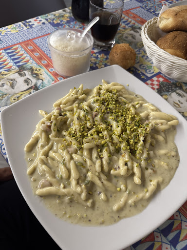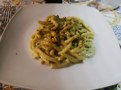 Read moreProvato questo luogo dopo averlo prenotato da thefork. Che dire.. Luogo accogliente e grazioso, molto tradizionale. Il servizio è stato efficiente, però per quanto riguarda il cibo c'è parecchio da migliorare. Abbiamo preso io e la mia ragazza un piccolo antipasto fatto di prodotti tipici siciliani, fin qui tutto bene, arrivando già al primo però devo ammettere che la pasta mi ha parecchio deluso. Abbiamo ordinato delle casarecce al pistacchio, cotte al punto giusto, però la crema di pistacchio si sentiva ben poco, sembrava diluita con acqua. Per quanto riguarda il secondo abbiamo preso un pó di carne e polpette di cavallo, anche qui non erano al top, carne troppo salata e polpette troppo cotte. Quindi per quanto la qualità del cibo in sé non era male il procedimento nel farlo è da migliorare personalmente. Se mi chiedereste di consigliarvelo la mia riposta...