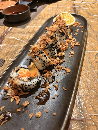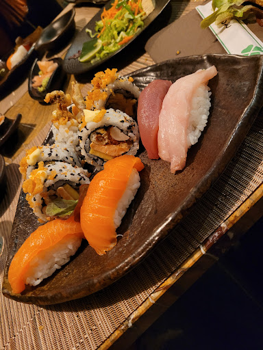 Non do le 5 stelle al cibo, solo perché non sono un grande conoscitore di sushi,ho iniziato a mangiarlo nell'ultimo anno con frequenza, ma solo all you can eat. Questo è di un altro livello senza dubbio, e mette un po' in dubbio il senso dell'esistenza degli all you can eat, che, a mio avviso, sono sicurmente validi quando a pagare il conto è un singolo individuo, ad esempio nel caso di una famiglia. Se invece si decide di fare un'uscita pagando alla romana, allora credo abbia più senso pagare 10-20€ in più a testa, per mangiare qualcosa di veramente buono. Fatta la premessa, passiamo alla recensione. Il locale si trova in una posizione molto centrale, con parcheggi nelle vicinanze. L'ambiente è molto carino e intimo, ben arredato, spazioso, con sedie comode e tavoli ampi. Ottimo servizio, i camerieri erano molti e sempre disponibili. Ma il punto forte è senza dubbio il cibo, abbiamo iniziato con del sashimi, niente a che vedere con le mini fettine di pesce plasticoso degli all you can eat, lo potete vedere dalla foto, i pezzi di pesce sono belli spessi e veramente buoni, insieme al pesce c'era anche una sorta di frittata, motlo buona anch'essa. Hosomaki molto piccoli, buoni ma niente di particolare, buoni i nigiri, con pezzi di pesce belli grandi, peccato per il riso forse troppo condito con l'aceto. Quello che però ti fa innamorare sono gli huramaki, tutti pezzettoni molto grossi, tanta varietà e tutti buonissimi, alcuni non ti stanchi mai di mangiarli, niente a che vedere con quelli degli all you can eat, che hanno tutti sapori standard. Siamo usciti completamente sazi, mangiando comunque più del necessario, e spendendo 95€ in totale. Entrambi siamo capaci di mangiare veramente molto, probabilmente in media si possono prendere 1 o 2 portate in meno, saziandosi e risparmiando dai 15 ai 25€, per questo motivo, credo che andare ad un all you can eat, quando si è soli o in coppia, o quando si paga alla romana, abbia poco senso, visto che in uno buono a cena, paghi almeno 27€ a persona, che con due bottiglie d'acqua diventano 30. Sicuramente hai la possibilità di mangiare di più, ma a che pro abbuffarsi fino a sentirsi gonfi, mangiando cibo mediocre, quando ci si può comunque saziare per bene, mangiando del...