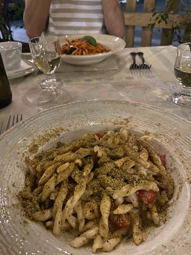 First of all, due to a large tourist group we had to wait quite some time for our food. That was alright because we were informed of that, so we did not mind. However, our waitress seemed so incredibly annoyed and stressed by our presence that we considered leaving directly. But we stayed… As a starter we had the pulpo salad, which was alright. But the pulpo was quite slimy. We know that this is something natural to pulpo, but actually easy to clean/ remove when prepared as a dish. Afterwards we received our main courses, or at least one of us. We had the pasta with clams, which was drowned in olive oil and quite basic. Frankly, it was just underwhelming with barely any taste except for fishy. While I received my main course, my partner had to wait for another 20-25 minutes before he received his, which means I was almost done with my course before he even started it. He had the Sicilian fish. That was nice. As a side dish we order grilled vegetables which were not seasoned and just put plainly on a grill. Oil and seasoning came separate in tiny plastic packs. Despite the fact that this is an incredible unnecessary waste of package, we would expect some higher quality seasoning and oil for a restaurant. And what about just marinating the vegetables before putting them on the grill? Anyway, we did not finish those, because they were unenjoyable. Overall, we really just felt like we wasted our money and we would not come back or recommend this place to dine.