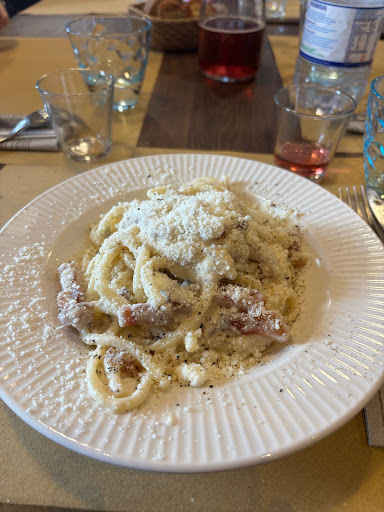 Read moreAttratti dalle recensioni ci rechiamo in questa trattoria con un amico, antipasto di mozzarella fritta e supplì cacio e pepe alla romana, riscontriamo similitudine ad i Sofficini nel primo caso, sapore parziale nel secondo caso. Servizio veloce e signora cameriera volenterosa. Abbondanti con il pane. Vino della casa rosso un po' frizzantino e molto leggero, speravamo in qualcosa di più rustico e casereccio, prezzi nella media. Pasta alla carbonara direi molta crema di uovo, molta pancetta croccante ma poca pasta rispetto alla crema di uovo contenuta nel piatto, 3 forchettate e 1/2 nel mio caso e scarpetta finale nella crema di uovo in eccesso, 4- 5 forchettate e avanzo di pancetta e crema il piatto del mio amico. Locale piccolino e menù su grandi lavagne nel locale. Conclusione antipasti non molto graditi, pasta gradita da me non da chi con me, vino deludente x nostri gusti, buono per chi ama i vini leggeri e un po' frizzantini, alcune cose interessanti ma non il top che speravamo di trovare in rapporto...
