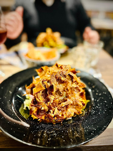 Il pasto è iniziato con una porzione generosa di carciofi alla giudia, croccanti fuori e teneri dentro, un vero trionfo di sapori. La pasta alla gricia che è seguita era la quintessenza della cucina italiana: semplice ma ricca di gusto, con guanciale croccante e pecorino romano che si scioglieva in bocca.