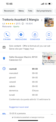 In foto gli orari indicati su Google, ho telefonato per avere conferma e mi è stato detto prima che era ovvio che fosse chiuso dato l’orario (le 15.48). Ho specificato che su Google non c’era nessuna chiusura pomeridiana e che era riportato l’orario continuato. Ho ricevuto una risposta bofonchiata con diverse offese non precisate né precisabili e ho chiuso. E, colmo dei colmi, sono stata richiamata per sentirmi dire: ma mica si mangia a quest’ora e poi un bell’improprio volgare. I titolari sono liberi di tenere aperte le loro attività quando preferiscono ma se indicano male dovrebbero chiedere in primis scusa e sopratutto non sindacare quando una persona debba aver fame.