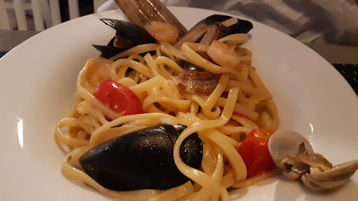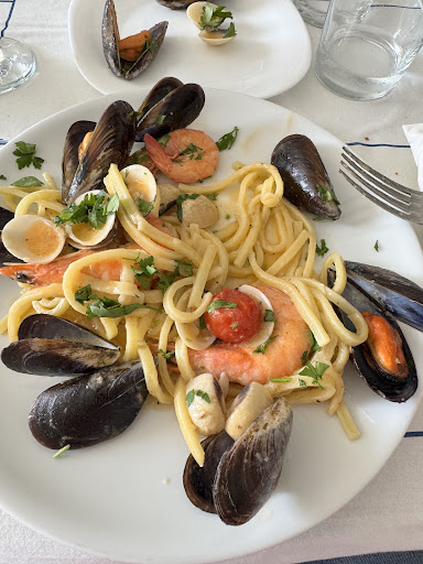Aggiornamento delle ore 14:25 arriva il primo rigorosamente con pesce congelato. Mangiamo il possibile e scappiamo via di corsa, POS non funzionante, pagamento in contanti e scontrino fiscale non fattibile per un presunto malfunzionamento alla cassa, quindi da avere successivamente. Totale €86 di seguito elencati. -2 antipasti misti di mare € 36€ (ci stava se non fosse stato quello del supermercato) -2 calici di vino (tavernello forse) 12€ -2 linguine alla scoglio 32€ -1 acqua naturale 2...