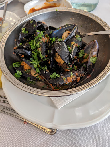 Seafood antipasti - we ordered for 2 - 2 minimum at E16. The dishes kept coming and coming - fried squid, octopus salad, fried sardines, smoked tuna and smoked swordfish, shrimp salad, raw oysters, raw clams, crab cakes, calamari w breadcrumbs, finishing w mussels in wine sauce. Wonderful bread to soak it up woth. There were 4 of us (adults) and we added grilled veggies, prosciutto with melon, half carafe of white wine, dessert and coffee for everyone and total was under 70 euros. MOST incredible price to value ratio ever.