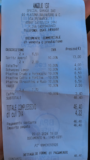 Read moreOrdiniamo due spianate con mortadella e un toast. Addentiamo le spianate e ci accorgiamo che c'è il prosciutto cotto con la maionese. Lo facciamo presente, ma ormai finiamo. Il toast invece ha l'interno freddo.. Anzi congelato! Lo apriamo e formaggio e prosciutto cotto hanno le scaglie di ghiaccio come i prodotti tolti dal freezer.. Lo facciamo presente.. Ma a metà toast non si cambia.. Lo lasciamo lì. Poi siccome non ci eravamo saziati, chiediamo una spianata "questa volta che sia con la mortadella però..". Da non credere, quando arriva al tavolo cosa c'è dentro? Cotto e maionese. A quel punto la rimandiamo indietro e ci alziamo per pagare. Ci abbuonano due spianate.. Ma è una presa in giro per il servizio ricevuto e le cose immangiabili. Come minimo ci volevano le scuse e 0 euro da pagare. Al prossimo concerto all'arena, scegliamo...