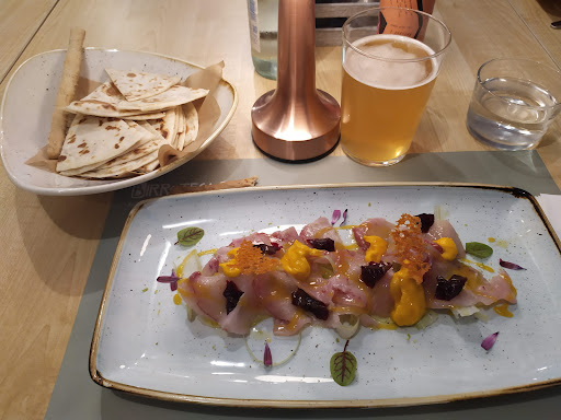 Io e mia moglie inizialmente pensavamo si trattasse di una birreria ma, viste le recensioni positive come ristorante, abbiamo voluto provare questo locale. Dopo una lunga camminata in mezzo al traffico, lontano dalla Cattolica pedonale, lo abbiamo trovato e, rifacendoci ad una nota trasmissione abbiamo convenuto questi pareri: Location: 7. Eâ preferibile utilizzare la vettura per arrivare fin qui, perchĂŠ in zona trafficata e non facilmente raggiungibile a piedi. Gli interni sono decisamente curati ed accoglienti. I tavoli sono apparecchiati con semplicitĂ ma con gusto e i piĂš esigenti trovano anche una piacevole veranda sul retro. MenĂš : 10 . Le proposte sono semplici con quella dose di personalitĂ ed attenzione da renderle eccellenti. Antipasti di pesce con crostini su pan brioschĂŠ, passatelli con gamberi rossi in emulsione di fiori di zucca, spaghetti mantecati alla ricotta alle vongole e bottarga ed un sorbetto al mango eccezionale sono state le nostre scelte che ci hanno sorpreso positivamente. Ottima la birra proposta dal titolare che ci ha consentito di gustare appieno quanto avevamo ordinato Servizio: 6 di incoraggiamento. Purtroppo lâinnegabile gentilezza e cortesia dei titolari che con una presenza discreta ma costante ci hanno fatto sentire quanto sia importante lâospite, non ha colmato il notevole ritardo (50 minuti) tra gli antipasti ed i primi piatti. Viste le continue giustificazioni del titolare vien da pensare che ci sia stato un imprevisto o un problema organizzativo inaspettato. Quindi è necessaria una prova dâappello per verificare se questo ritardo, che può inficiare il giudizio anche del menĂš in quanto si rischia di non assaporare con il giusto spirito le proposte, sia un caso oppure no. Conto: 8. In linea con le aspettative e molto buono nel rapporto qualitĂ prezzo. In sintesi, un locale gestito da moglie in cucina, marito e figli in sala, in cui si trovano pietanze con ingredienti freschi e di qualitĂ , preparati âespressiâ come sottolineato a piĂš riprese dal titolare, con una vasta e attenta scelta di birre e vini che consigliamo...
