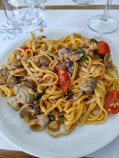 Probabilmente la miglior mangiata di pesce a Cattolica! Cozze e vongole alla marinaia (finite abbeverandosi del brodetto rimasto, direttamente dal mestolo... qua non si fanno prigionieri 😉) e soprattutto, il miglior branzino al forno della vacanza! Il cibo è talmente buono a prezzo assolutamente onesto, che al giovane e volenteroso personale perdoni tutto (ad esempio calici x il vino da richiedere, piatto x i gusci non portato, etc). Ottimo giudizio finale ma prenotate con moderazione, la nostra vacanza non è finita e vorremmo tornarci, senza rischiare che sia sold out... 😆 ‐----------------------------------- AGGIORNAMENTO 2025: Veniamo tutti gl'anni, anche d'inverno e, nel mese estivo della vacanza, praticamente ogni 3-4 giorni. Non recensivo più perché avrei dovuto ripetermi nei complimenti... quest'anno non posso esimermi per via della nuova scoperta fra i primi piatti: mezze maniche al ragù rosso di pesce, dove svetta la triglia... FOTONICI!!! Aggiungo anche che son già 2-3 anni che facciamo qua, in 8-10 persone, il pranzo di Ferragosto... menù alla carta, nessuna sbavatura, nessun ritardo, servizio sempre frendly, sul pezzo, che accompagna l'ottimo cibo e ti fa passare 2-3 ore in perfetto relax. Da applausi. Ultima nota sul prezzo... leggo alcune lamentele, immagino partorite da marziani che non frequentano la riviera romagnola... vendono mezzo chilo di branzino al forno, pescato del giorno, preparato divinamente (vedere foto), a meno di € 25... visto che spesso non capisco come ragionano gli umani, non ci provo coi...