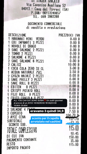 Read moresono andata venerdì con altre due persone, ci accomodiamo dopo un po’ perché c’era da aspettare (nonostante avessimo prenotato e ci fossero i tavoli liberi e apparecchiati). ordiniamo degli antipasti e del crudo, gli antipasti arrivano in tempo accettabile ma a parte la tempura di gamberi, gli involtini e i gyoza non erano dei migliori, specialmente gli ultimi. facciamo un’altra ordinazione di uramaki e questi arrivano dopo buoni 30 minuti, invece la prima porzione di crudo non è direttamente arrivata e dopo averla riordinata ho chiesto ad un cameriere che gentilmente mi ha portato dopo non troppo solo una delle due porzioni che avevo ordinato, all’interno di cui però era presente un capello. abbiamo chiamato discretamente la cameriera e le abbiamo chiesto il conto, alla cassa ci viene fatto un conto di 127€ con lo sconto di 12€ per il capello. il problema è che il totale della formula ayce era 104€ invece di 90€, quanto sarebbe dovuto essere per tre persone stando alla descrizione instagram del locale, e insieme al coperto e alle varie cose che abbiamo preso fuori dalla formula il conto sarebbe stato 113€, meno dei 115€ che ci hanno fatto pagare. siamo usciti incolleriti, affamati e fregati perché lo “sconto” ci ha semplicemente tolto il sovrapprezzo e abbiamo mangiato solo la metà dei piatti ordinati, in due ore. nonostante la cameriera si sia scusata, alla cassa la “responsabile” ci ha riso in faccia perché abbiamo detto di non aver gradito lo sconto. pessima esperienza, non...