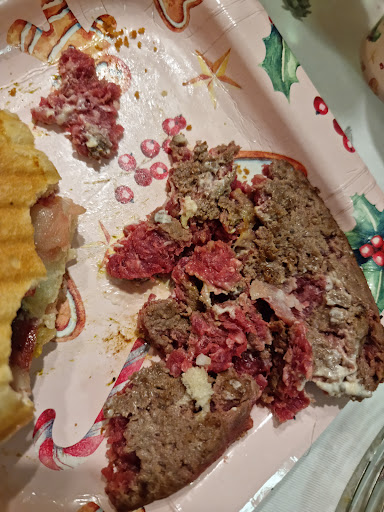 Avrei dato uno 0,ma il minimo è 1 stella,quindi sono stata costretta. Bene,per modo di dire,ordinato tramite Glovo,consegna programmata il prima possibile alle 19.50,ma il primo orario non viene rispettato,va bene non ci sono problemi, secondo orario 20.15 anche questo non rispettato.... dai arriverà per le 20.30,che sarà mai,ma per sicurezza chiamo il driver e chiedo informazioni.Ci riferisce che è passato già 2 volte a ritirare l'ordine ma non era pronto... Sono ormai le 21.00,decido di chiamare direttamente il locale che molto sbeffeggiante la signora mi dice che il driver è già andato a ritirare alle 20.30 e che è in consegna. Ma passa un'altra mezz'ora,ormai sono le 21.30 e ancora siamo in attesa del nostro ordine. Il driver arriva alle 21.40 e anche lui ci sconsiglia di ordinare di nuovo da loro,pessima organizzazione! Beh,almeno i panini saranno buoni? Non saprei dirlo perché il mio non ho potuto mangiarlo,avevo specificato carne ben cotta,ma se avesse potuto avrebbe fatto MUUU ( come dimostra la foto allegata). Nulla,grazie per aver contribuito...