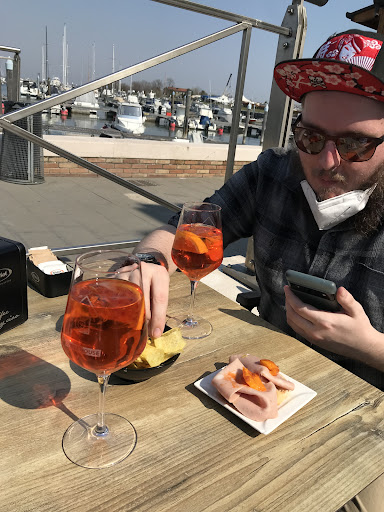 Seemed an unlikely place for it, by the vaporetto stop at Treponti, but we had the very best aperol spritz there so far on our trip to Venice. I could taste alcohol, which is more than I can say for several other spritz aperols I’ve had, the aperol flavor was rich and the glass was more than half full. Even the orange slice was sweet and juicy. The cicchetti was unexpected at noon. It was simple and perfectly delicious- something like ham with bits of green olive and a slice of roasted pepper on top. The potato chips were fresh. Thank you...