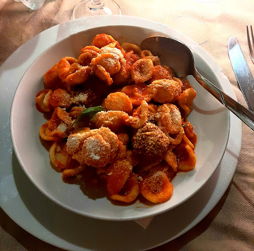 OSTERIA DAI VERI SAPORI PUGLIESI!! Locale molto semplice ma nello stesso tempo curato e attento alle esigenze della clientela. Possibilità di cenare all'esterno nelle giornate d'estate con un'atmosfera molto carina. Cibo ottimo, mi ha fatto riscoprire gli antichi sapori leccesi: menù ampio comprendente antipasti, primi con pasta fatta a mano, secondi sia di carne sia di pesce, vari contorni e dolci. Presenti anche proposte fuori menù con prodotti del momento. Qualità delle materie prime fantastica, speciali le orecchiette al sugo con polpette con pomodoro buonissimo (le migliori mangiate fin ora) e pesce sempre freschissimo con pescato del giorno (fantastica la frittura mista). Contorni casalinghi e con sapori decisi (buonissimi i peperoni). P.S: vi consiglio come dolce il pasticciotto fatto a torta, preparato da loro🍰 Costo nella media, anzi anche più basso di altri ristoranti della zona. Super...