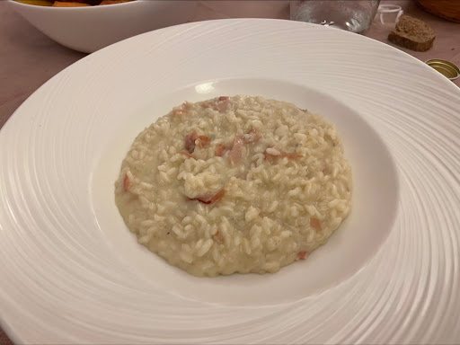 Read moreE' una trattoria storica, da quel che mi dicono. Noi abbiamo cenato qui, la prima volta, alla degustazione di risi e ci era sembrata senza infamia e senza lode, ma abbiamo voluto dargli un'altra possibilità e abbiamo avuto la conferma che cercavamo. Questa trattoria porta in tavola poche proposte, ma davvero ben scelte, presentate e cucinate. Il cibo è fresco, buono e le porzioni sono abbondanti! Il locale è davvero caratteristico: tavoli e sedie in legno antico, quadri alle pareti che raccontano "la storia dei nostri padri", un camino gigante ad accogliervi all'ingresso e una cantina antica dove vengono stagionati i salami di loro produzione e che, annualmente, ospita la gara di salami. E il prezzo è davvero ottimo!! Siamo andati in 5 e abbiamo preso un antipasto a testa, un primo a testa, due secondi e una bottiglia di vino (no dolce) e abbiamo speso 140 euro in totale! Ci torneremo...