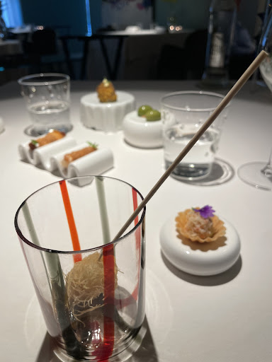 I went there Friday for lunch with four friends. We had the seven course tasting menu with wine pairing, which included five snacks and three petit fours. Overall the food was at a high level, but with a miss or two along the way. We felt that the scallop dish with porcini mushroom and the dish with prawns and julienne vegetables missed the mark a little bit compared to the other dishes. Everything else was really enjoyable, but I would like to highlight the crispy prawn snack with soffrito sauce, the lemon risotto with prawns and dried fish, the "carbonara" with lobster and caviar and some of the moments on the raw fish plate, especially the anchovies with soy and yuzu. Really amazing food accompanied with great bread and the best grissini we ever tasted. The dessert was playful and an amazing end to a wonderful lunch.