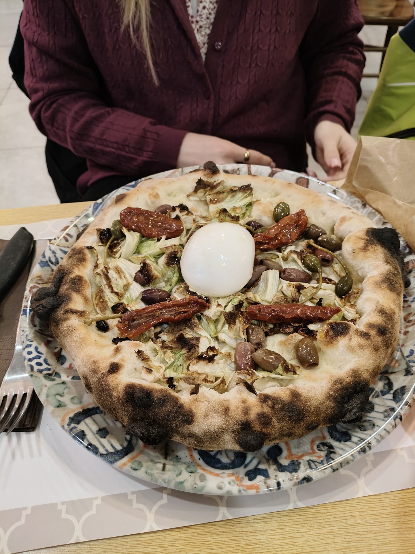 Devo dire che è stata una piacevole scoperta. Ci siamo capitati per caso, per una cena improvvisata e senza pretese. Sono rimasto subito colpito dal forno a legna che ti accoglie appena si entra e dal bancone del bar, in legno e marmo, come una volta. Saletta minimal ed accogliente e personale molto molto gentile. Il menù è diviso in due: menù con solo pizze e menù con antipasti, primi e secondi. Ho avuto modo di provare sia la loro pizza, che un antipasto e un secondo e devo dire che mi hanno soddisfatto a pieno. La pizza, pur non sentendo il tipico profumo del lievito madre, aveva un buon impasto e risultava scioglievole e leggera e gli ingredienti davvero niente male, specialmente i capperi. Buono anche l'antipasto misto della casa, con salumi e formaggi, accompagnati da pane caldo. Ma il pezzo forte secondo me è stato lo stinco di maiale, servito con patate al forno, un triangolino di polenta e dei fagioli. Piatto che risultava davvero soddisfacente ed abbondante; unica nota un po' storta era la cotenna, risultava un po' molliccia, a gusto personale l'avrei preferita un pelo croccante, ma ripeto, è gusto personale Nel complesso direi che siamo rimasti molto molto soddisfatti e rapporto qualità/prezzo...