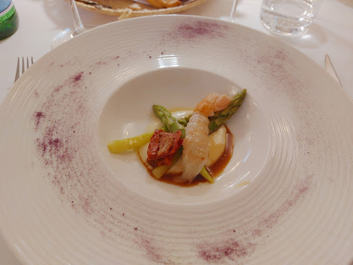 Uno dei piatti che ho apprezzato maggiormente è stata l'insalata croccante di asparagi, pomodori confit e gamberi al timo. La freschezza degli asparagi e dei pomodori confit si sposava perfettamente con la delicatezza dei gamberi, il tutto esaltato dal profumo del timo. Il piatto era presentato con una cura particolare e decorato con una salsa leggera e dal gusto delicato.