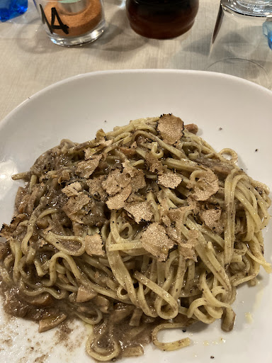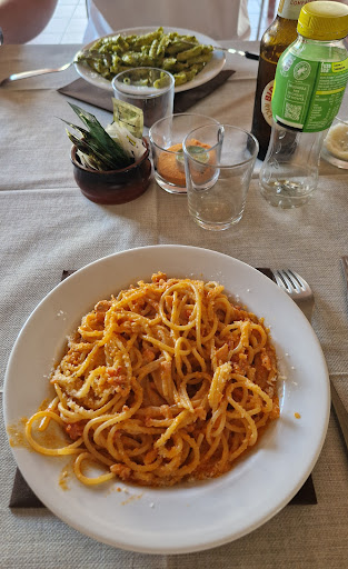 A Milano siamo abituati ai ristoranti vestiti da trattoria: aspetto rustico e prezzi alti. Qui c'è una trattoria con prezzi da trattoria, e qualità del cibo da ristorante, e per di più anche buono. Il signore che ti porta il menu ha l'aria mite, quasi dimessa. La cuoca è sua moglie. I prezzi sono più che onesti. Il cibo invece è ottimo e abbondante! Vi dico solo che avevo ordinato primo e secondo: penne al granchio e frittura di pesce. Mi è arrivato un piattone di penne al dente, buonissime... e nel frattempo ho visto passare la frittura: era tanto abbondante da venir fuori dal piatto!! A malincuore, ho dovuto rinunciarci, perché a mangiare tutto quel cibo, dopo un primo così, poi avrei dovuto andare subito a letto a dormire; mentre purtroppo dovevo tornare a Milano. Ma vi assicuro che è stato un sacrificio... Avevo chiesto una bottiglia grande di acqua ed un quartino di vino bianco. Me ne ha portato un po' meno di mezzo litro. Mia moglie ha preso una bistecca di tacchino, patate fritte croccanti di fuori e morbide dentro (al punto che l'interno sembrava purè: una cosa buona buona), e una bottiglietta di coca cola. Poi tartufo affogato nel caffè per lei, e caffè semplice per me. Abbiamo pagato poco più di venti euro; non a testa, ma tra tutti e due! Tovaglia di carta "buona", quella che sembra stoffa... E bagno pulito. Ecco una trattoria che vale più di molti...