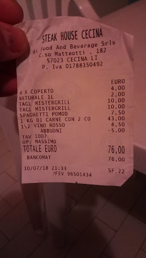 Siamo stati qui ieri, martedì 10 luglio, due adulti e due bambini, il personale ci ha messo subito a nostro agio, abbiamo scelto di prendere due taglieri mister grill, affettati ottimi, per la prima sera finalmente abbiamo mangiato un ottimo prosciutto crudo, la pancetta era sublime. Abbiamo bevuto 1/2 litro di vino rosso della casa, niente male, e poi abbiamo preso il pacchetto con 1 kg di carne con 2 contorni, abbiamo aggiunto la variante da manzo a chianina, con un piccolo sovrapprezzo ci siamo deliziati, chilo di carne c'era anche un po' di pollo, non lo avevo mai provato così buono. Anche qui ci hanno applicato il coperto di 1 euro a testa, tranquillamente assorbito dallo sconto di 5 euro, quindi per terminare credo di tornare prima della fine delle vacanze. Grazie a tutto lo staff, ma soprattutto a chi ci ha servito ai tavoli, se abbiamo passato una bella serata è stato soprattutto...