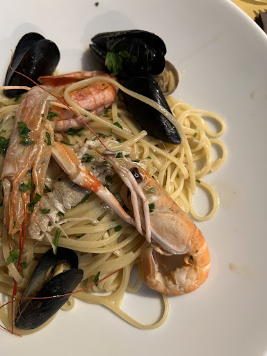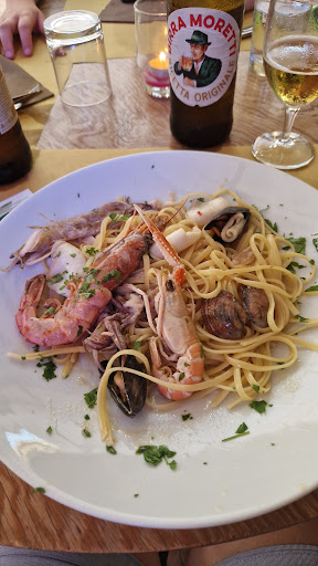 Arriviamo e ci dicono di aspettare il capo sala per chiedere di sederci. La capo sala era esattamente accanto al cameriere a cui abbiamo chiesto e ha fatto finta di nulla. Ci sediamo e dopo un'eternità ordiniamo, fino a qui tutto apposto. Arrivano i prima 4 piatti abbastanza scaglionati (eravamo in 5), riusciamo a mangiare con molta calma le paste e il fritto e della pizza dell'ultima non c'è ancora traccia. Mangiando la pasta alle vongole troviamo un fantastico filo di ferro nel mezzo! Dopo 15 minuti dalla fine di piatti arriva la pizza, eureka. Peccato che nonostante fosse stato chiesto se ci fosse o meno la mozzarella e dopo risposta che la mozzarella non c'era visto che non era scritta negli ingredienti, è arrivata con la mozzarella!! Dopo aver riferito il tutto ad un cameriere che ha detto che lui non ne sapeva nulla e non c'entrava, abbiamo chiesto di parlare con il titolare. Arriva la capo sala e all'osservazione che la pizza è arrivata mezz'ora dopo il resto ha risposto che c'era tanta gente e non possono controllare in che ordine escono le cose, all'osservazione che non si poteva mangiare la pizza visto il lattosio ha risposto"ma non è un problema mio, sei tu che hai un problema". La pizza non è stata fatta pagare e non è stata nemmeno mangiata vista l'intolleranza al lattosio, si è poi scusata dicendo che aveva ascoltato male la richiesta e che loro non hanno cose senza lattosio. Volevano togliere anche la pasta alle vongole ma l'abbiamo pagata visto che comunque l'abbiamo mangiata....
